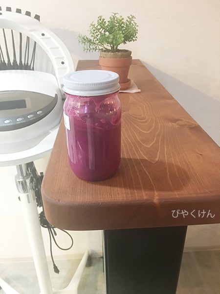 ピンクっちゃピンクやけど、濃すぎて赤みが強いなぁって印象です。