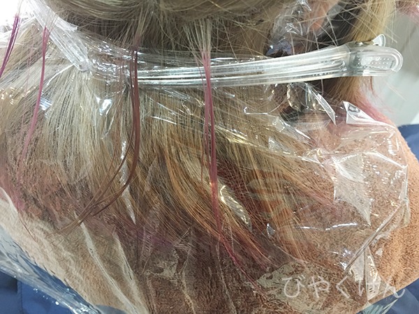 ・白っぽいクリームカラーでラベンダー色を入れた。(たぶん一般的な酸化染毛料)