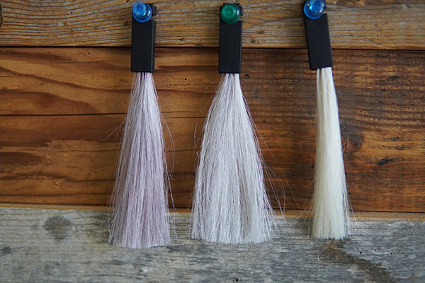 ①は、ブリーチonカラーの際、余分な黄ばみを飛ばしシルバー系パール系にしたいときに使用します。